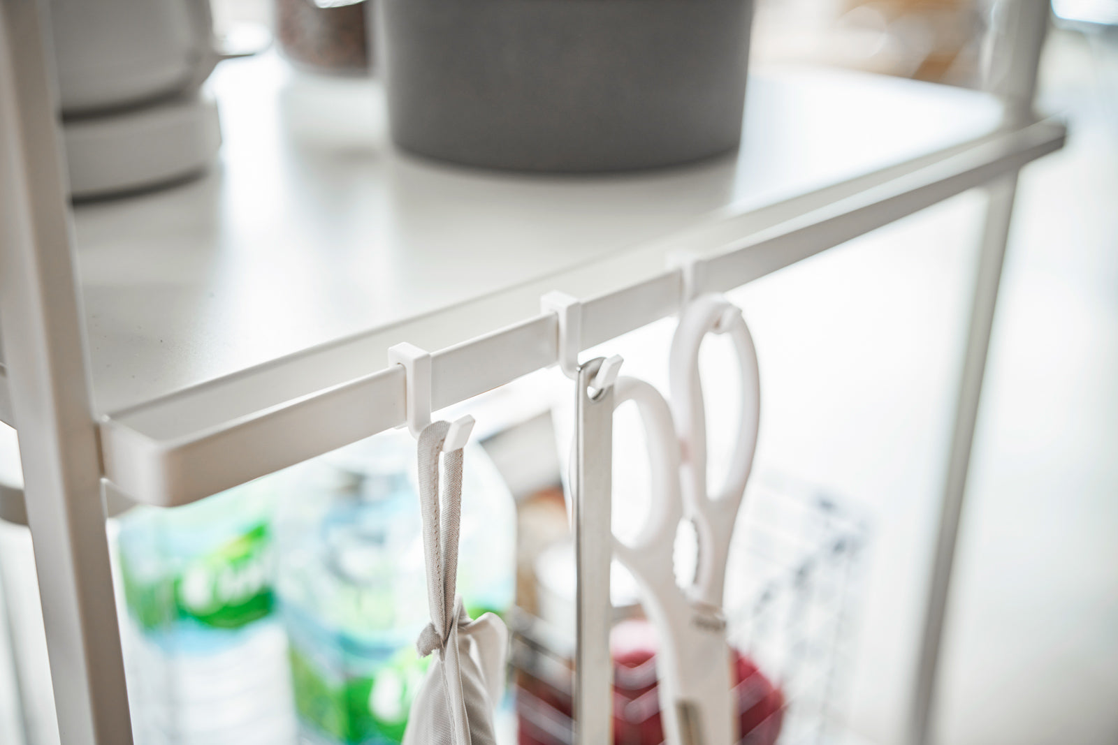 Breakfast in bed just one roll away. A sturdy rolling cart with endless uses. Try enjoying a Sunday morning breakfast in bed or ferrying refreshments to the living room for guests. With three levels for storage and hooks for hanging, the possibilities stretch on and on.